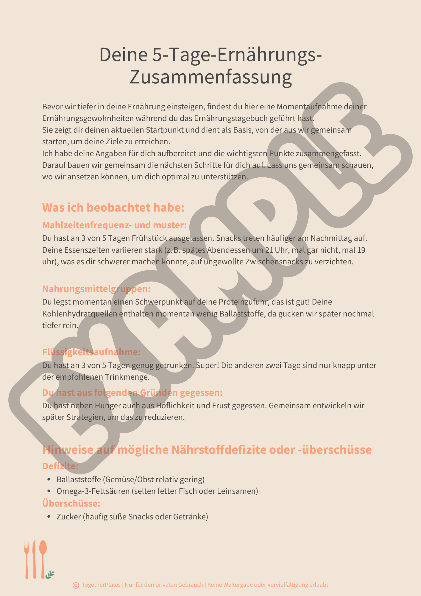 Auswertung deines 5-Tage-Ernährungstagebuchs + Anamnesebogen
